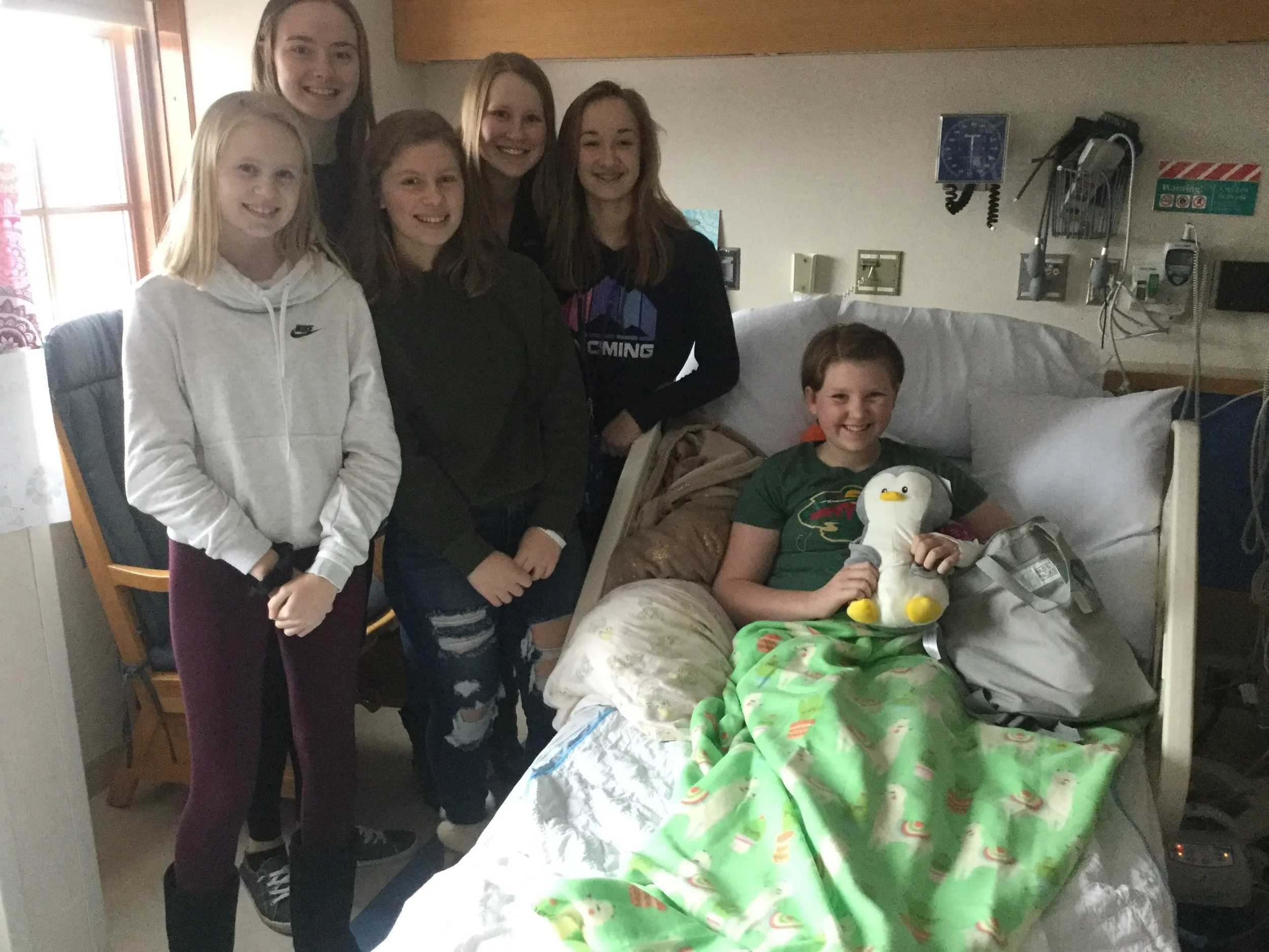 Caroline, Sofia, and Lauren with their new friend Steven at Gillette Children’s, Saint Paul.